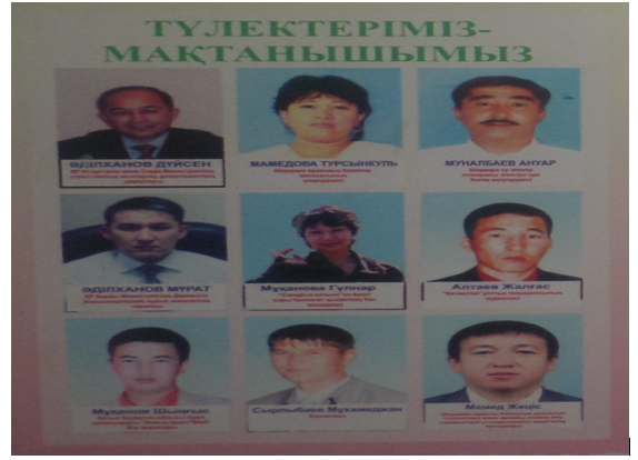 2001 жылғы мектеп түлектері Сарбасов Нартай, Торбаев Жақсылық кәсіпкер, Мамедов Қоныс, Қарашбаев Нұрқылыш аудандық аурухана қызметкерлері.