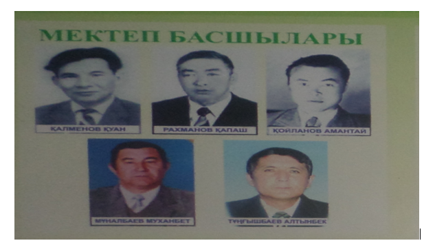 мен білім сапасының дамуына үлкен үлес қосты.Жақсының жақсылығын айт нұры тассын демекші мектеп директоры иманды болғыр Рахманов Қапаш 1984 жылға дейін қызмет атқарып, Кеңес Одағының жаппай мақта жинау науқаны тұсында, қан қысымы көтерілуіне байланысты оқушылармен егіс алқабының басында жүргенде , кенеттен қаза тапты. 1984-1986 жылдар аралығында Аудандық білім бөлімінің әдіскері қызметін атқарған Амантай Қойланов мектепті басқарды. 1986 жылы Шардара өңіріне 1967 жылдары жолдамамен келген ұстаздық жолын Сүткент совхозынан бастаған , бұған дейін аудандық білім бөлімінің инспектор қызметін атқарған ұлағатты ұстаз Мұханбет Мұңалбаев келді.