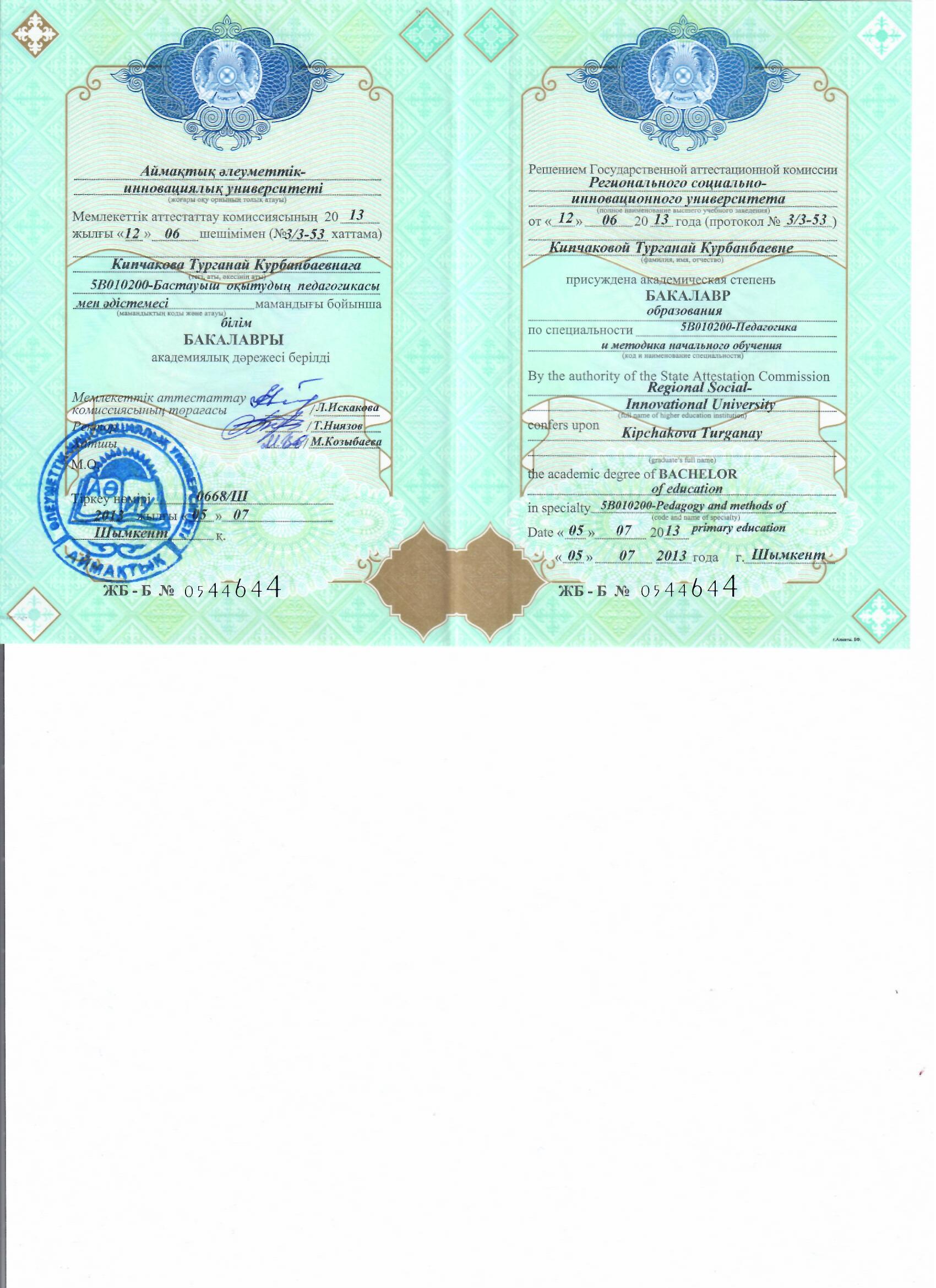 Кипчакова Турганай